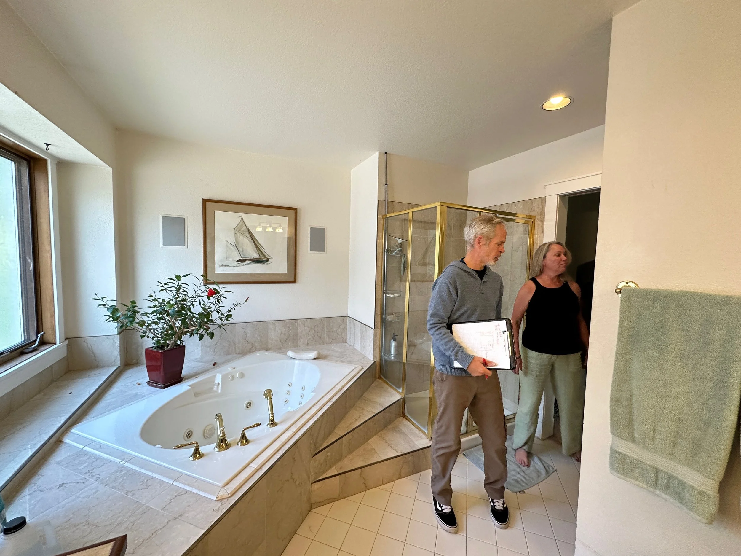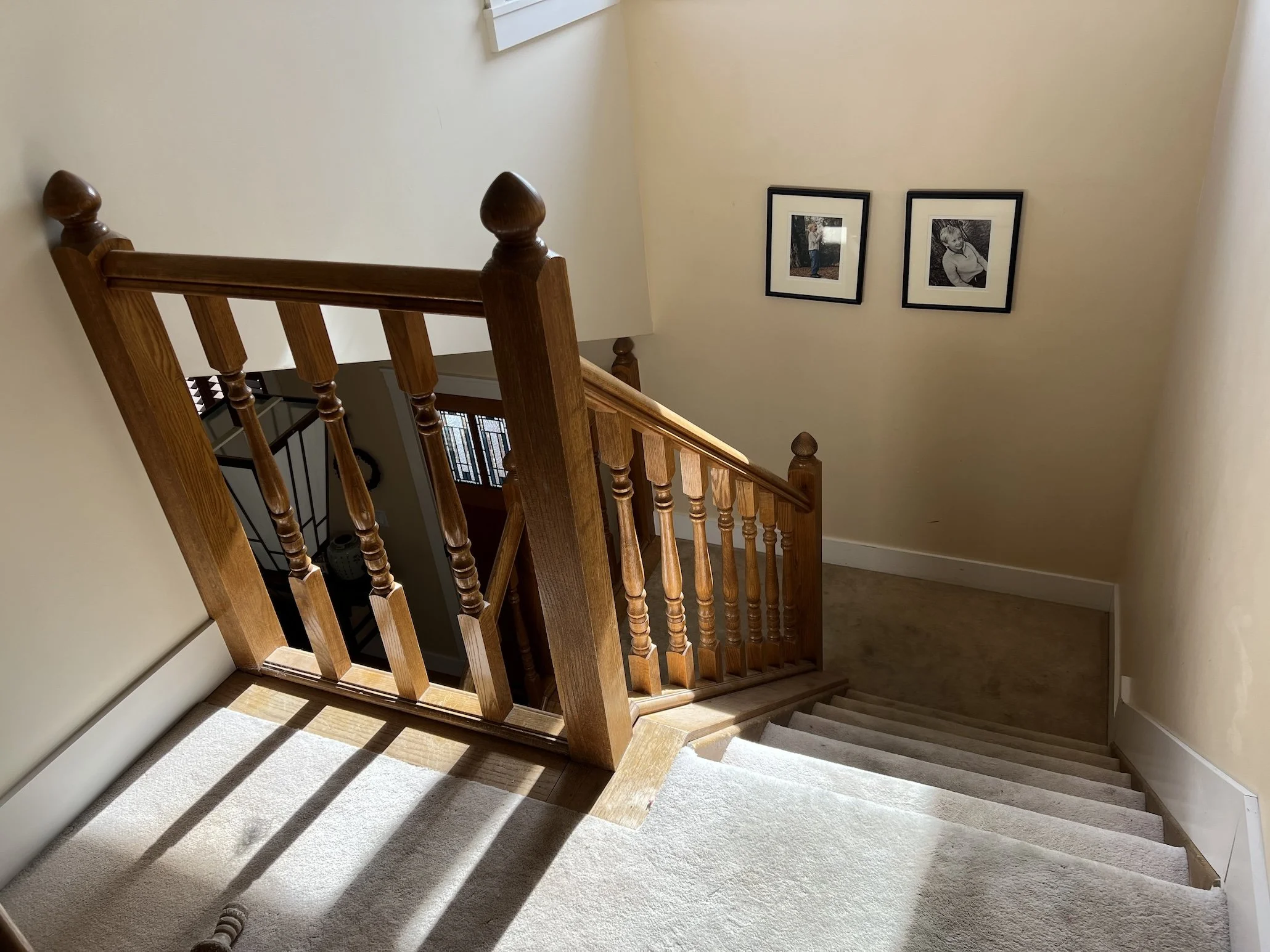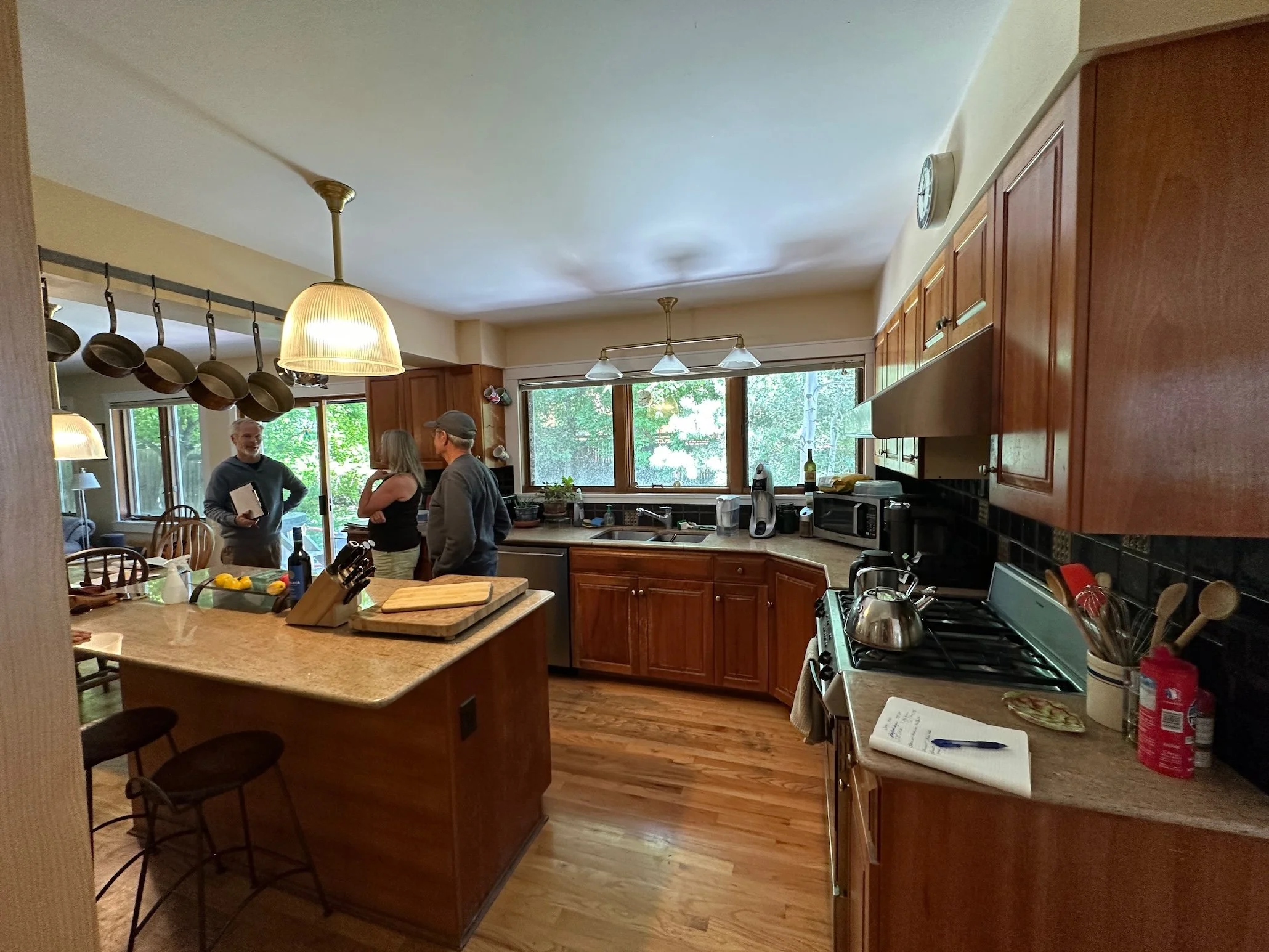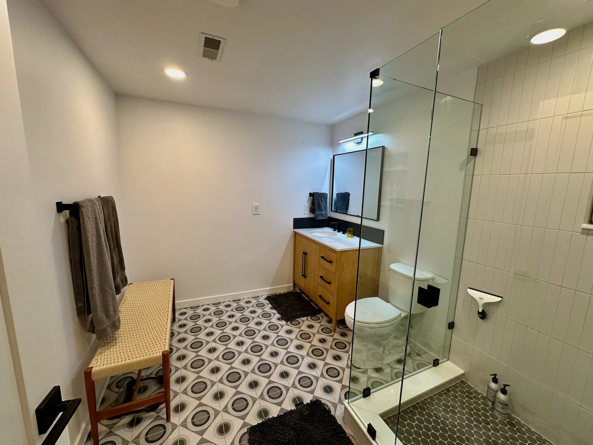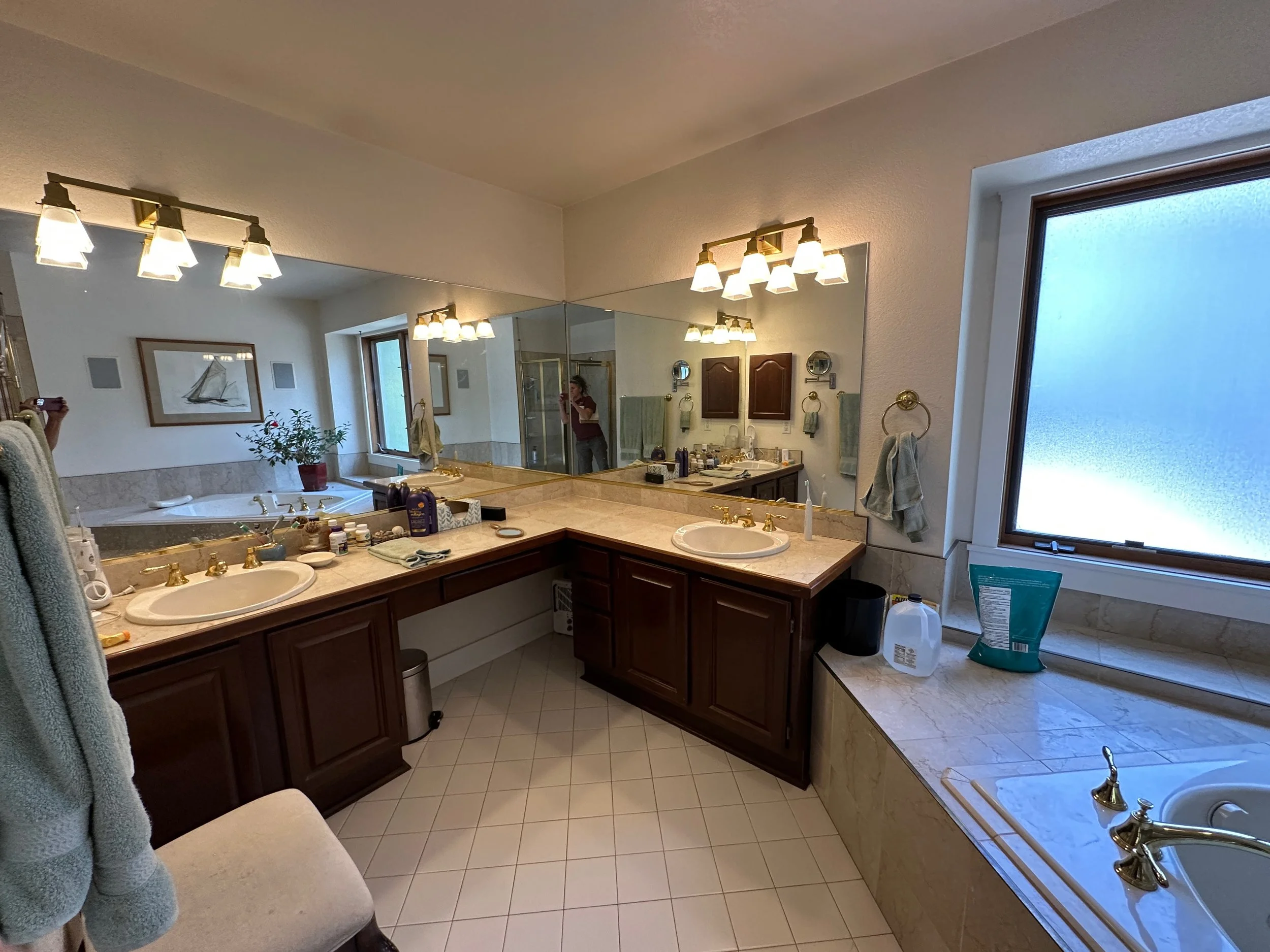 This 27-year-old family home was revitalized, combining modern aesthetics with practical upgrades. The dated exterior was streamlined by replacing and reconfiguring windows to maximize natural light, swapping cedar siding for fire-resistant cement board, and removing unnecessary features like the bay window, primary bedroom dormer, bathroom bump-out, and brick veneer accents. Inside, the layout was modernized with an open-concept main floor, vaulted ceilings, and a gourmet kitchen featuring rift-sawn white oak cabinetry. Three bathrooms, including the primary, were fully updated for improved flow and functionality.